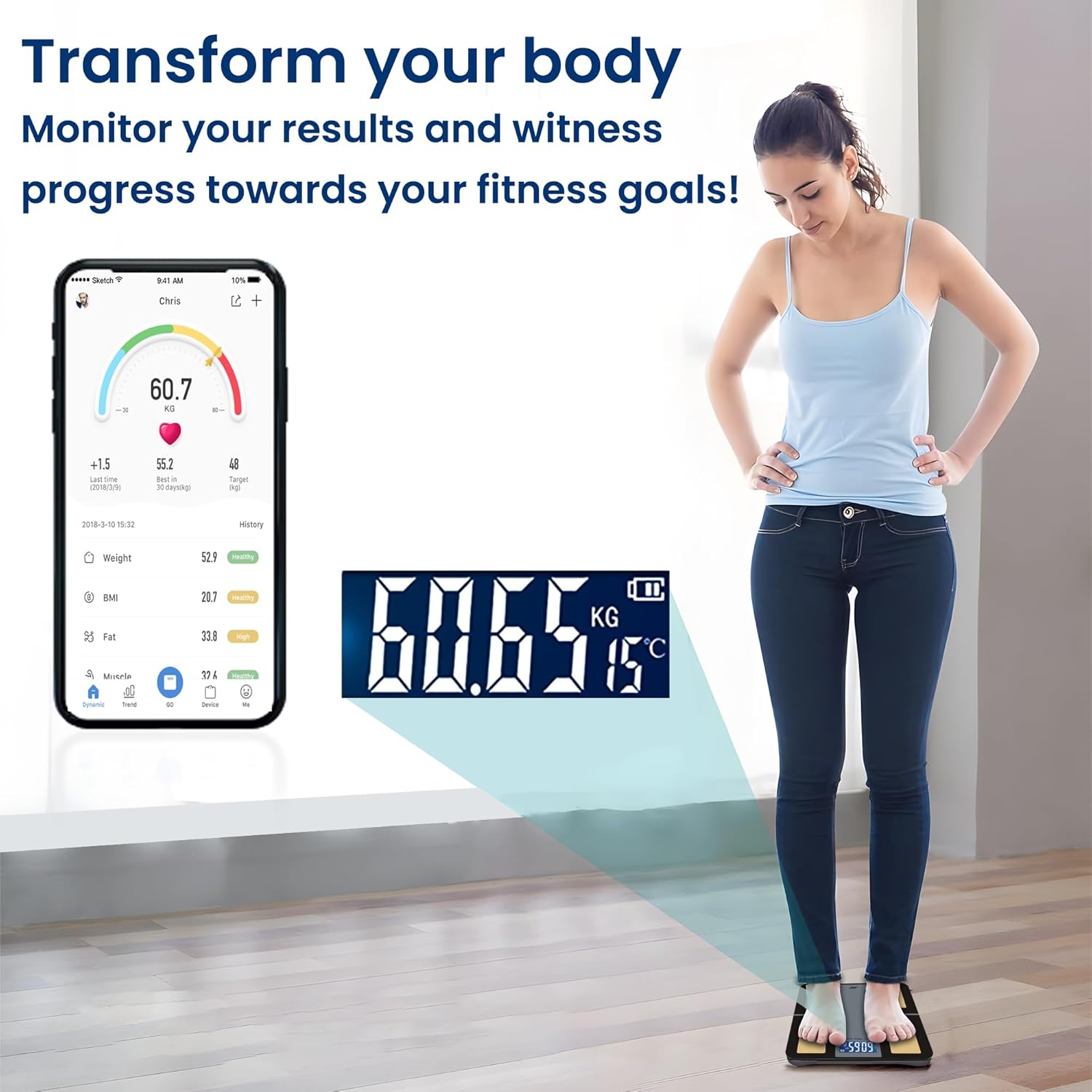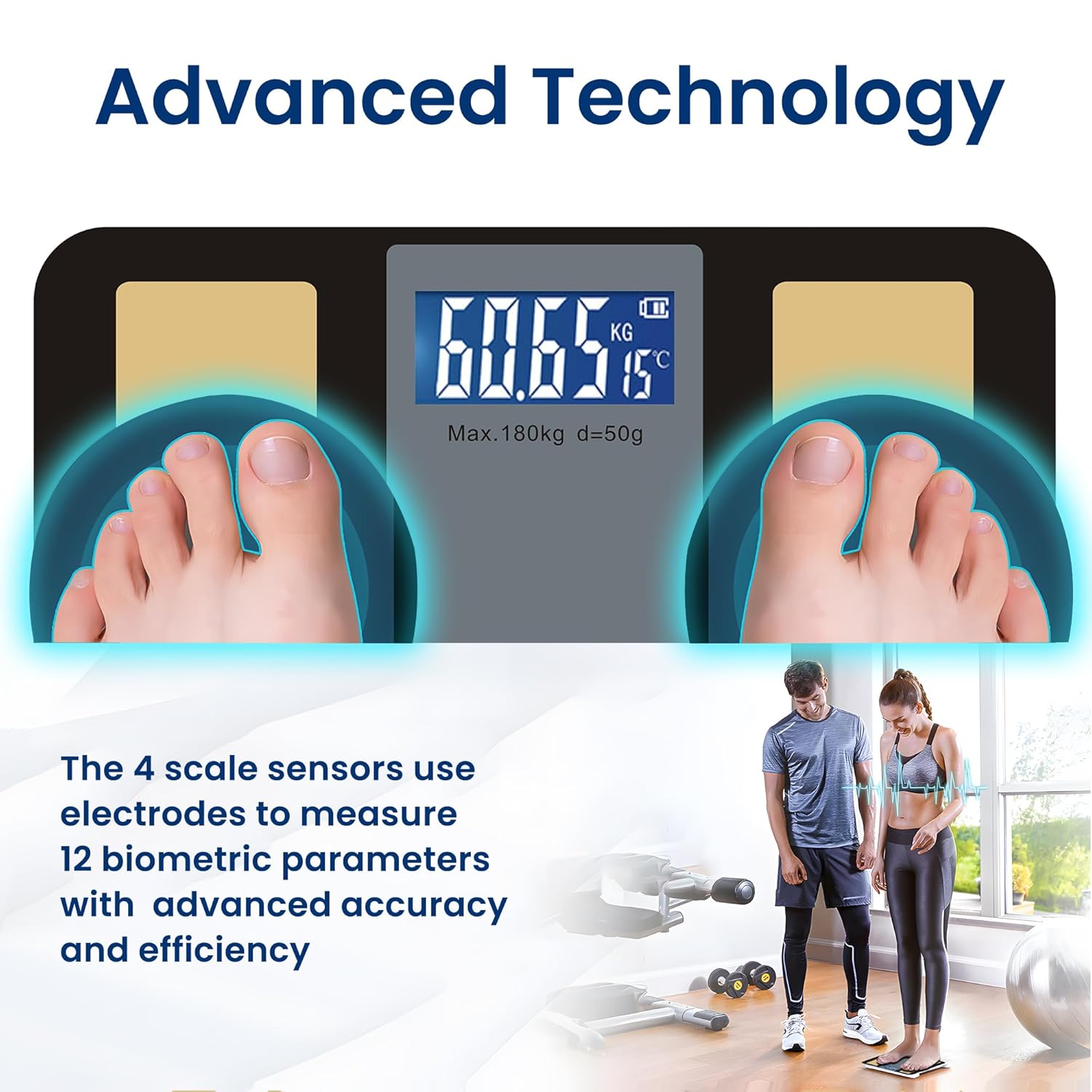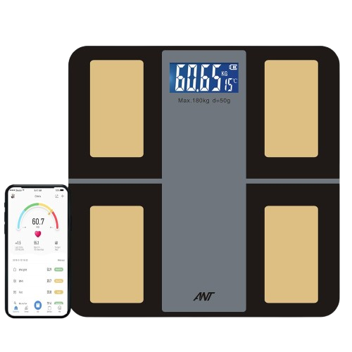 ANT Zigma Smart Digital Weighing Machine with App, Bluetooth BMI Monitor, Tracks 12 Body Metrics, Large Display, 30M Warranty – Black